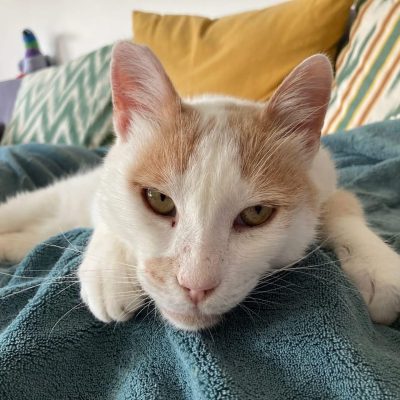 Rudy is very affectionate. He loves to climb on your shoulder and will nuzzle his head into your neck. He is very adventurous and is always exploring so would love a home with outdoor space. He can get along with other cats but gets a little bit jealous when the attention isn’t on him.