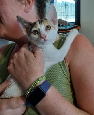 Aries is a shy kitten but loves to play with his siblings. We’re sure once he’s in a home he will come out of her shell.