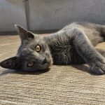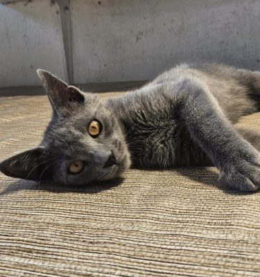 Dennis (aka Dennis the menace) is a sweet but mischievous boy. His is often seen hanging around the cages trying to steal food from the kittens. He is very chilled out and loves to sleep!.